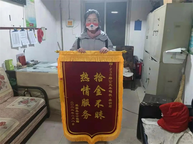 幾天后,王女士制作了一面錦旗送到了235車隊(duì),再次表達(dá)對車隊(duì)和駕駛員樊明君的感謝。