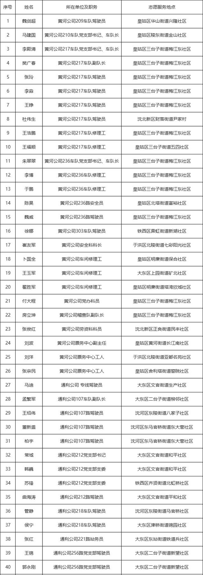 附表:沈陽客運(yùn)集團(tuán)職工參與志愿服務(wù)工作的人員名單