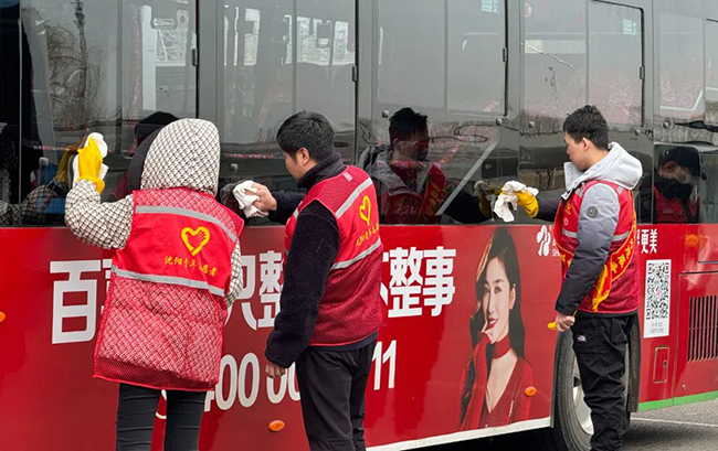 活動(dòng)開始后,團(tuán)員青年及志愿者在簽名板上寫下了自己的名字,以此響應(yīng)號(hào)召成為新時(shí)代雷鋒精神的傳播者、弘揚(yáng)者和踐行者。團(tuán)員青年及志愿者佩戴“我是雷鋒”標(biāo)識(shí)胸牌,并對(duì)沈陽(yáng)南站樞紐站進(jìn)行大清掃活動(dòng),清理車內(nèi)外衛(wèi)生,擦亮沈陽(yáng)窗口,樹立公交新形象。
