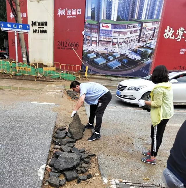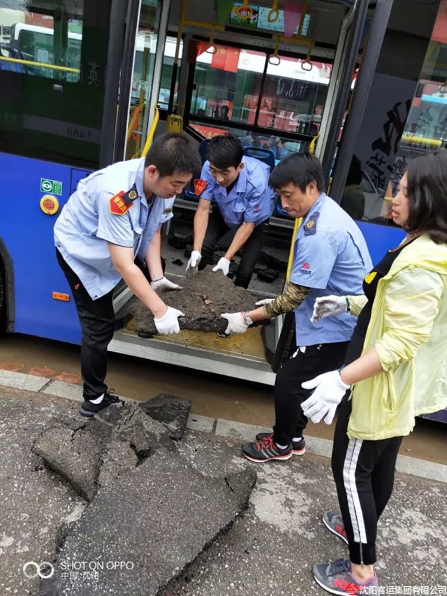 同樣路過此路段的黃河公司217路的駕駛員們也發(fā)現(xiàn)了這個問題。因為行經(jīng)此路段,路面原因造成的塞車不僅影響到正點行車,而且車輛顛簸也可能導(dǎo)致客傷事故的發(fā)生,對車輛底盤也會造成不同程度的損傷。針對這一問題,車隊管理人員與廣大駕駛員想法不謀而合,大家?guī)翔F鍬、麻袋,在周邊施工處尋找到能夠利用上的鋪路石頭,收集裝車運到松山路,大家齊心協(xié)力把原本坑洼不平的馬路填補平坦。路過的司機和行人都紛紛豎起大拇指,稱贊道:“217路的員工個個都是好樣的,為你們點贊?!绷碌奶鞖怛滉査苹穑蠹也林~頭的汗水,聽著路人的稱贊,風(fēng)趣地調(diào)侃道:“路見不‘平’你往里哪走?我們217路該出手時就出手!”大家積極、陽光、向上的精神面貌感染著身邊的每一個人。