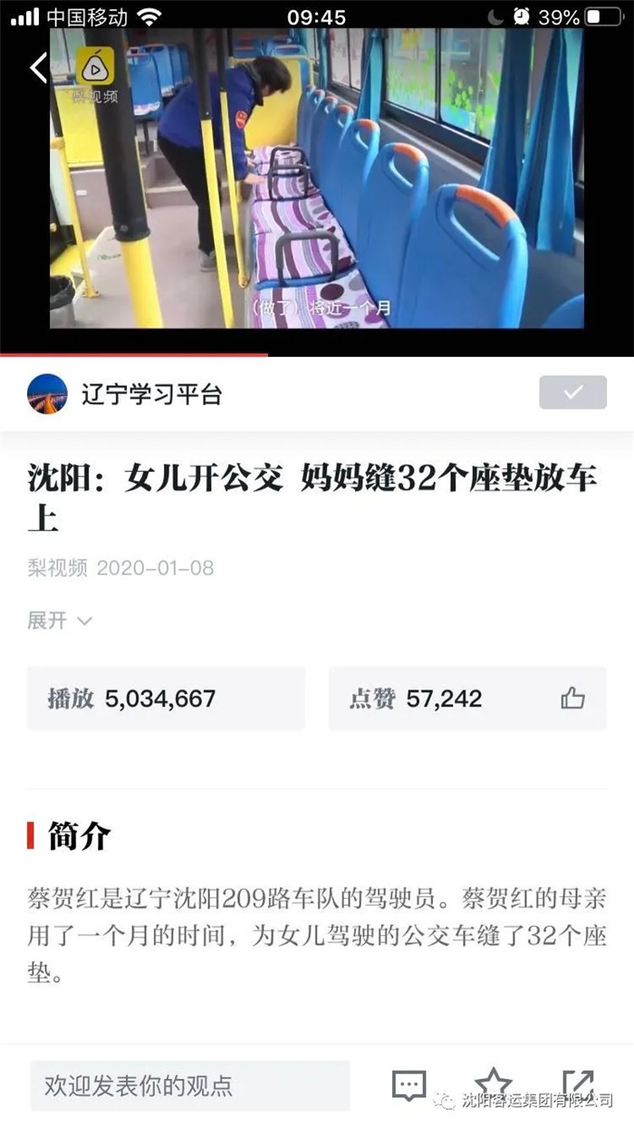 中央宣傳部《學(xué)習(xí)強(qiáng)國(guó)》學(xué)習(xí)平臺(tái)對(duì)此事進(jìn)行了刊載,有效傳播了沈陽(yáng)公交的正能量。