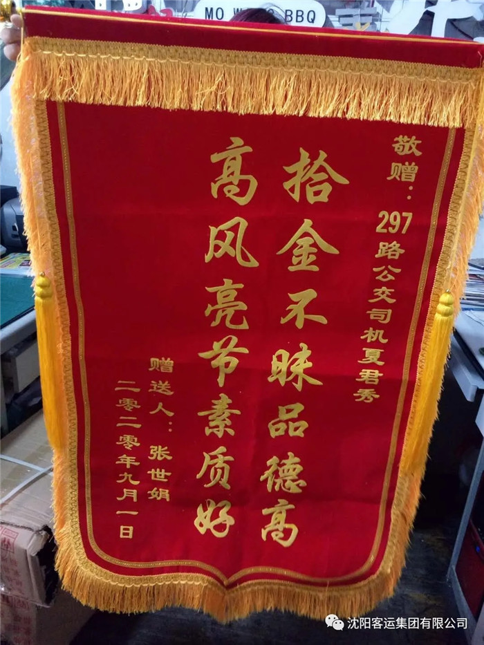 過(guò)了一會(huì),張女士來(lái)到了站務(wù)室,她回憶到自己乘坐297路公交車,下車的時(shí)候發(fā)現(xiàn)手機(jī)不見(jiàn)了,于是她求助路人給自己的手機(jī)撥打電話,最后得知手機(jī)掉落在剛乘坐的公交車上并被駕駛員撿到,張女士對(duì)高健隊(duì)長(zhǎng)和駕駛員夏君秀表示萬(wàn)分感謝,第二天早晨還送來(lái)了錦旗表達(dá)自己的謝意。