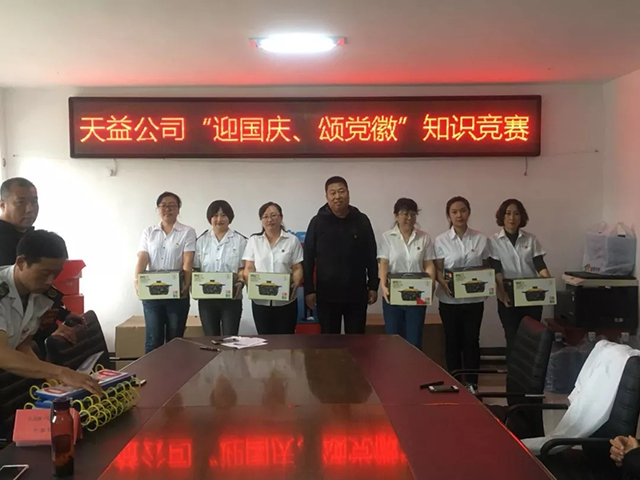 近日,天益公司黨委在公司會(huì)議室舉行“迎國慶、頌黨徽”黨建知識競賽活動(dòng),來自公司所屬11個(gè)黨支部,共33人參加競賽;公司黨委副書記、紀(jì)委書記趙立東、副經(jīng)理丁峰同志、基層各黨支部書一同參加了本次比賽。