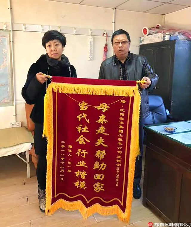 12月6日,走失老人家屬將一面寫有“母親走失幫助回家 當(dāng)代社會(huì)行業(yè)楷?!钡腻\旗送到公司,公司才了解王艷宇所做的善舉。